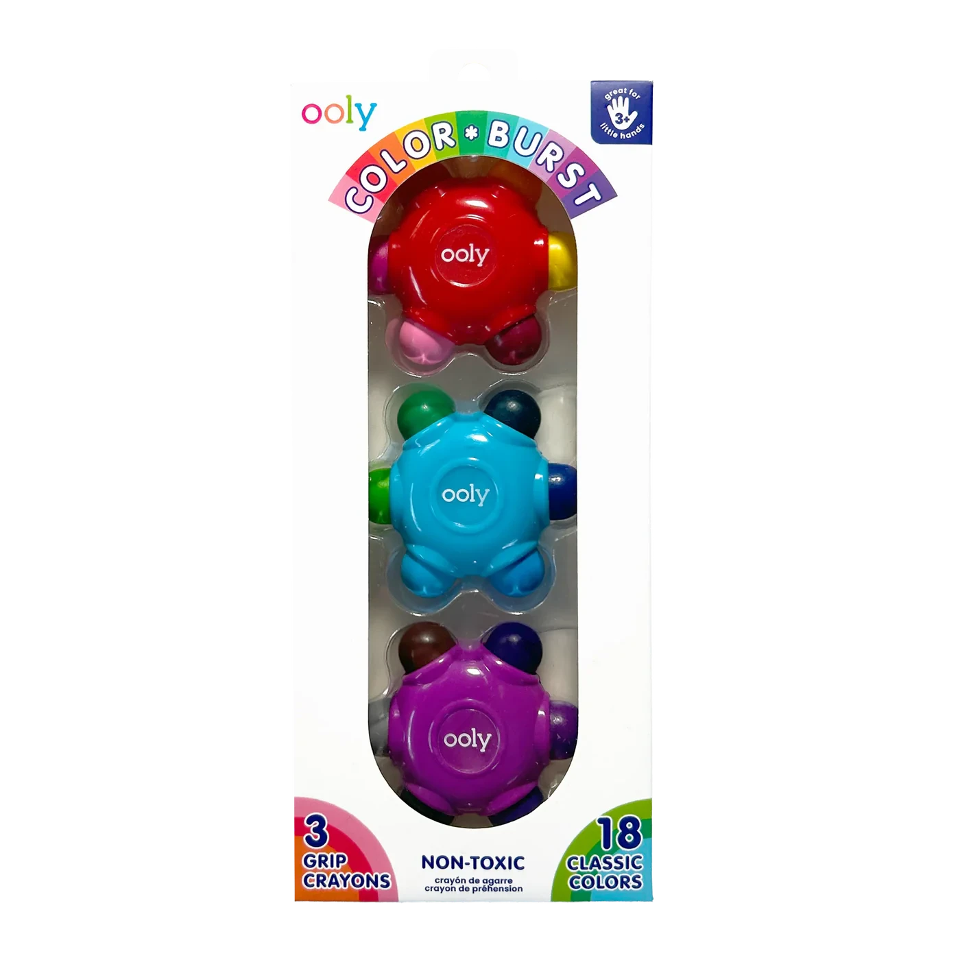 - Set includes 3 ergonomic-shaped crayons