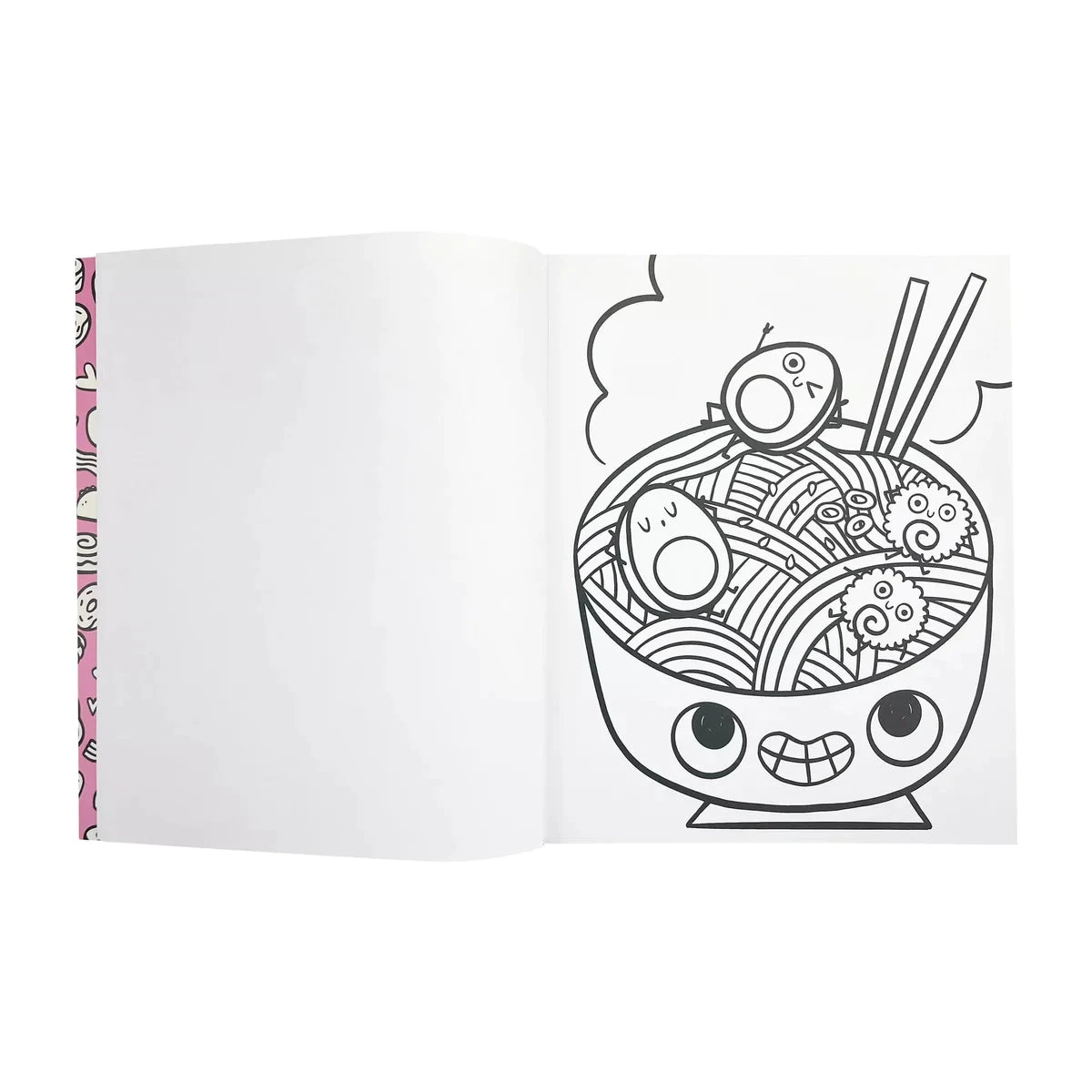 - Coloring book includes funny illustrations of happy snacks including pizza, ice cream, cupcakes, and more