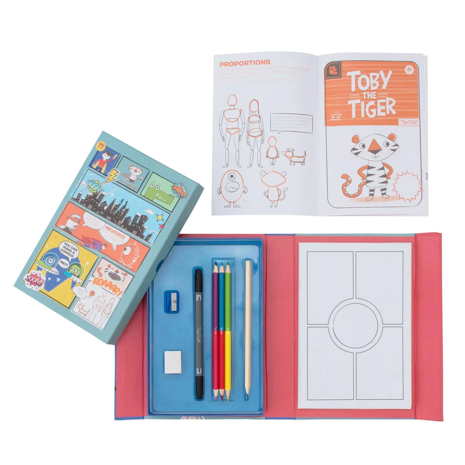 Do you have a budding comic book artist in your house? Get their creative juices flowing with Tiger Tribe’s Comic Book Kit – Practice. Plan. Create a fabulous, all-in-one set filled with everything you need to create your very first comic!