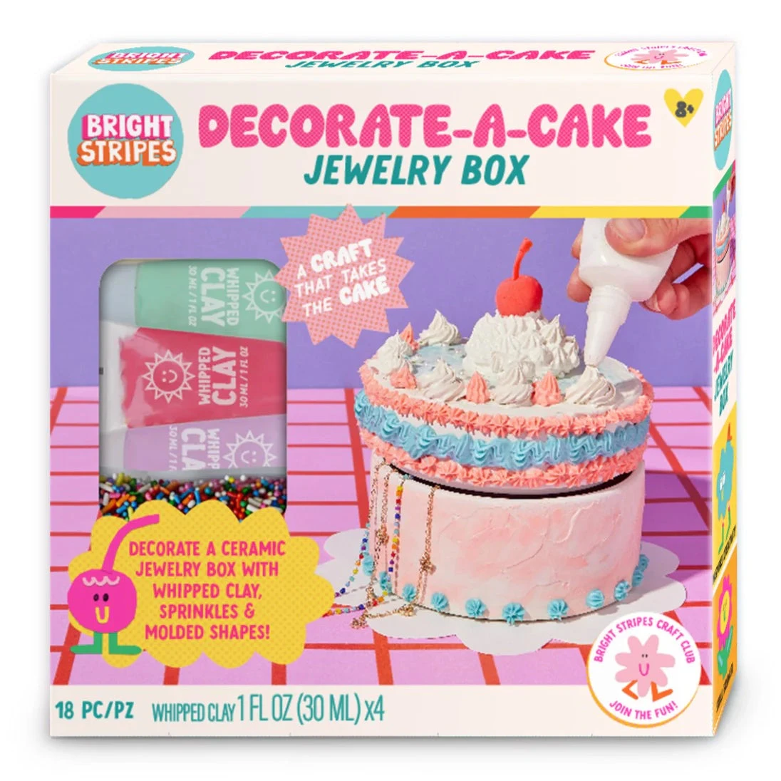 Unleash your creativity and design your very own delectable masterpiece with the Decorate-a-Cake Jewelry Box! This delightful kit allows kids to decorate a ceramic jewelry box to look just like a delicious cake. Start by adding the realistic whipped icing clay to the top of the box, then let your imagination run wild as you sprinkle on colorful decorations.