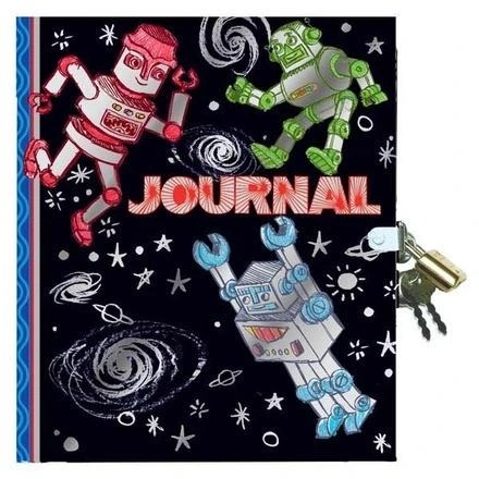 Fun robot-filled cover is printed with silver metallic ink. Illustrated by Brandon Reese.
