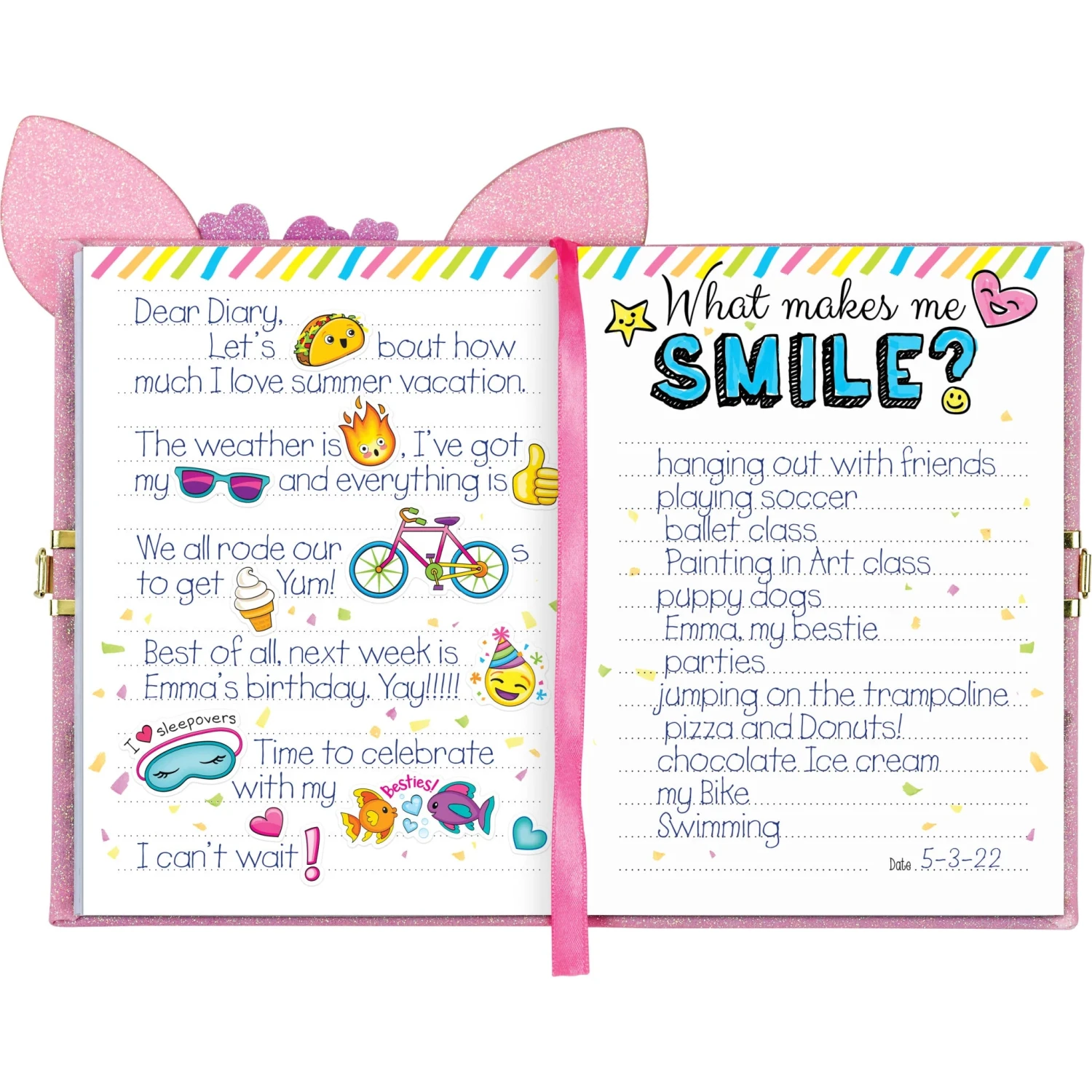 Fill a lockable deer-shaped diary with your stories and secrets! Deer Diary measures 7.5” x 5.5” and includes 100 pages for you to fill up with your drawings and thoughts 100 page locking diary comes with a heart shaped lock, 2 heart shaped keys, 5 neon markers, glittery pom-pom pen, 80 glitter stickers, 100+ assorted pearl and craft glue Decorate the outside of your velvet locking diary with 100+ assorted pearls and add a personalized touch to the inside of your diary with 5 vibrant markers, stickers and a pom-pom pen Writing and drawing is a great way for kids to express themselves in a creative and fun way! Inside you will find positive aspiration art, writing prompts and plenty of punny pages to color and bring to life Kid-friendly, non-toxic and recommended for ages 6+