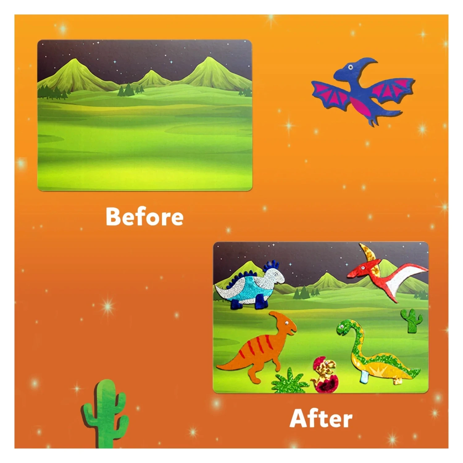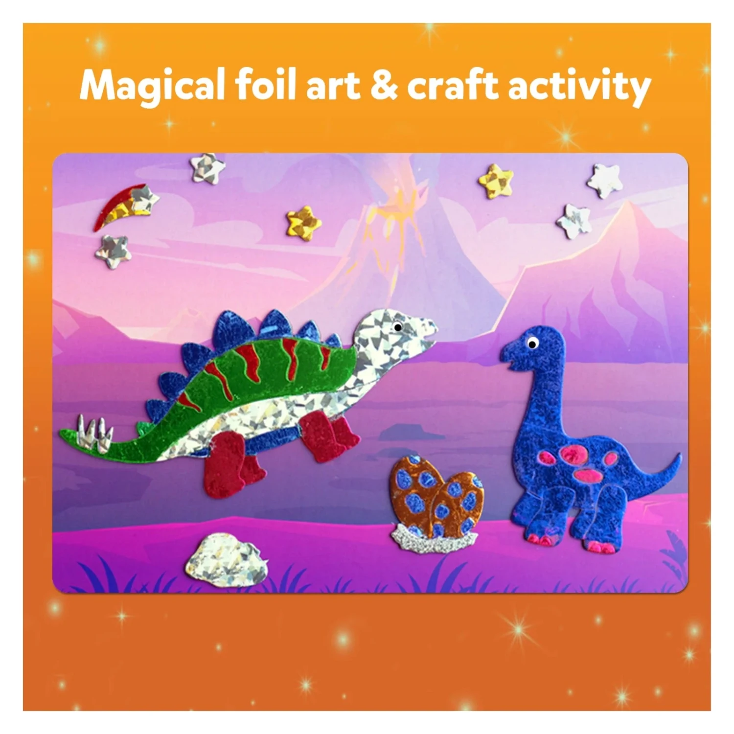 Foil Fun is a magical, mess-free activity to inspire hours of creative fun in your little one. Let their imagination soar as they create unique foil pictures with dinosaurs, volcanoes, fossils and more! Select a Picture Canvas, choose stickers and apply color using sparkly foil sheets. Add as many colorful stickers as needed to bring the canvases to life. Zero parental supervision required!