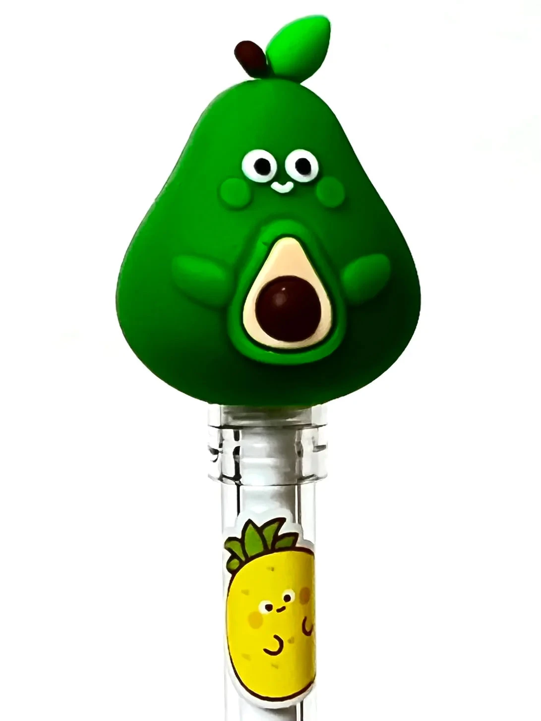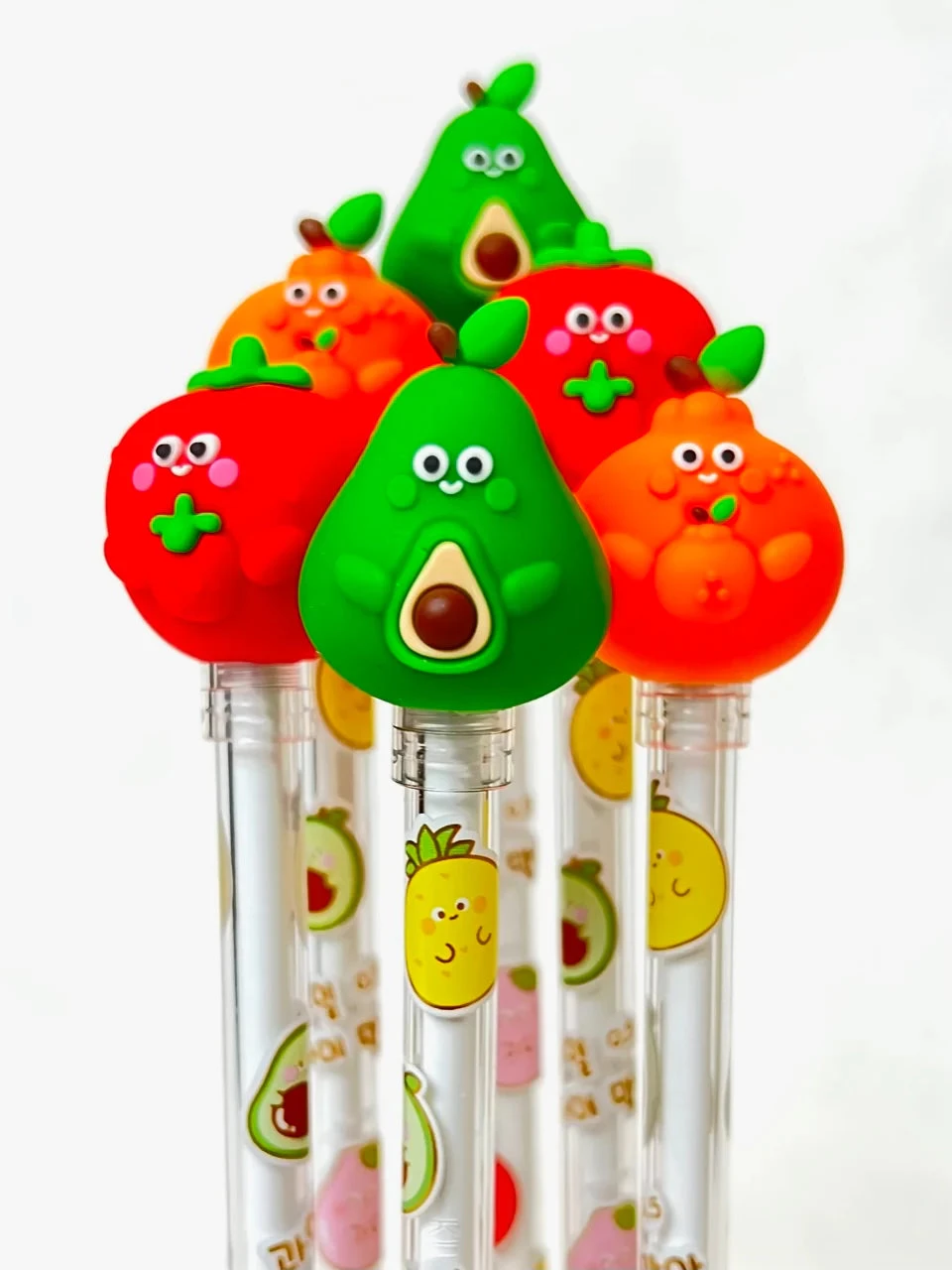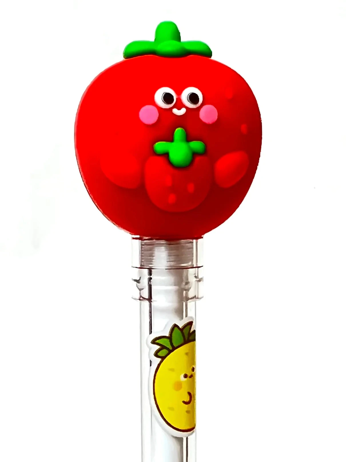 The fruit buddies gel pen uses a gel-based ink, combining the permanence of oil-based ballpoint ink and the smooth glide of water-based ink, in which pigment is suspended in a water-based gel. Gel ink is thick and opaque, it shows up more clearly on dark or slick surfaces than the typical inks used in ballpoint or felt tip pens.