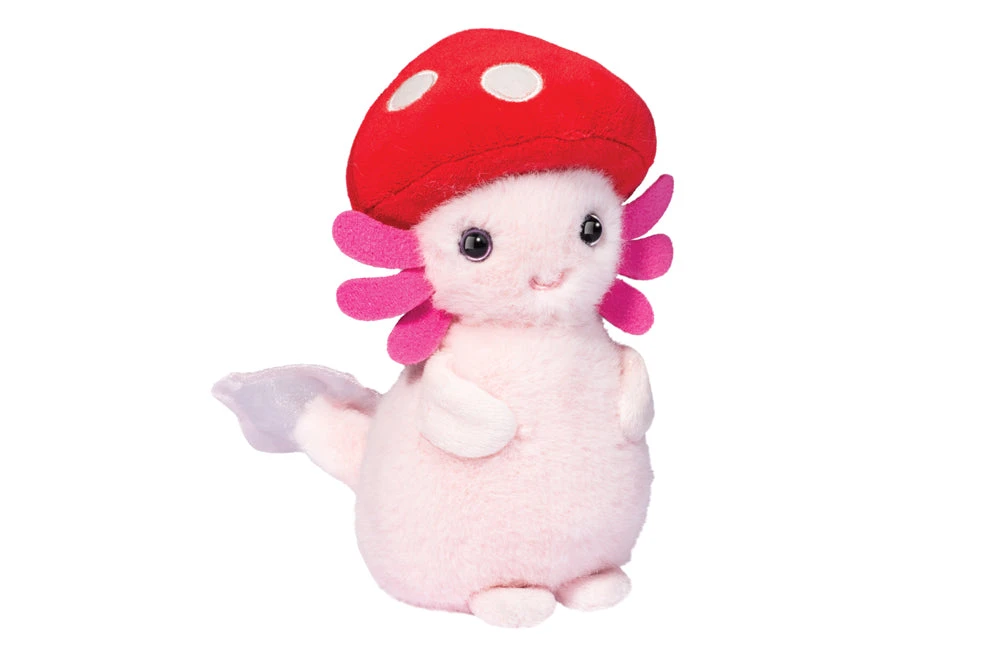Funglotl’s pastel pink body is soft and squishy, while his wide, friendly eyes and little stitched smile give him a cheerful and approachable look. The mushroom cap on top of his head, with its vibrant colors and spotted texture, makes him a truly one-of-a-kind friend. Don’t you just want to invite him over for a tea party?