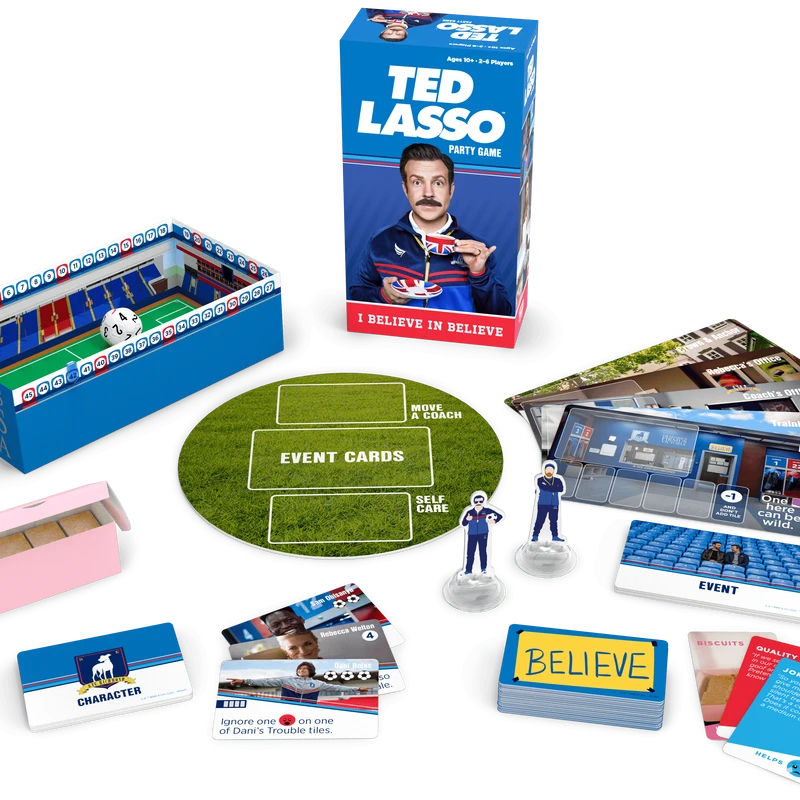 Life at AFC Richmond isn’t always simple, but Ted Lasso knows the best ways to rally his team! Now you can join the coaching staff and show that you believe in Believe! Choose to help your friends and footballers with a comforting word or a clever quip. If you ever get stuck, just break out the homemade biscuits! This feel-good cooperative party game is all about having fun, the Lasso Way!