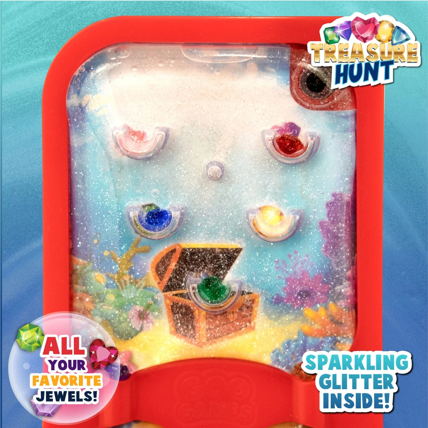 Introducing GooGames, the next-level sensory thrill for hands-on gamers everywhere! Drawing inspiration from the classic water games but with a sprinkle of modern magic and sensory appeal. Navigate vibrant fruits, glimmering gems, or delectable candies using the bubble summarys, guiding them through each game card to win! The mesmerizing swirl of pearlescent glitter makes every play session a visual treat, while the squishy summarys are so satisfying and fidgety. Each game also comes with two swap-out backer cards, giving each player 9 total levels to master. Whether you’re seeking to conquer a challenge, zone out in the shimmering dance of glitter, or simply enjoy the sensory satisfaction, GooGames is the go-to!