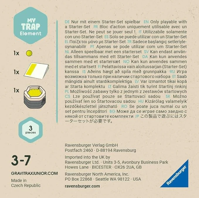 - The GraviTrax Junior Element Trap provides a magical effect; the ball disappears into the stone for a few seconds before rolling out of the stone again at a lower height – for even more exciting track sequences