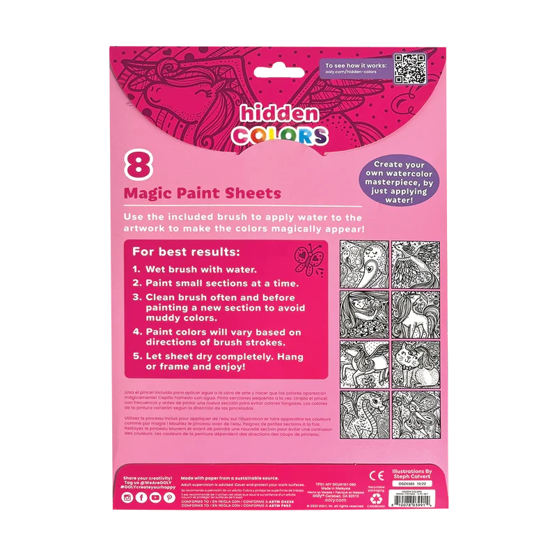 - Includes 8 magic paint sheets