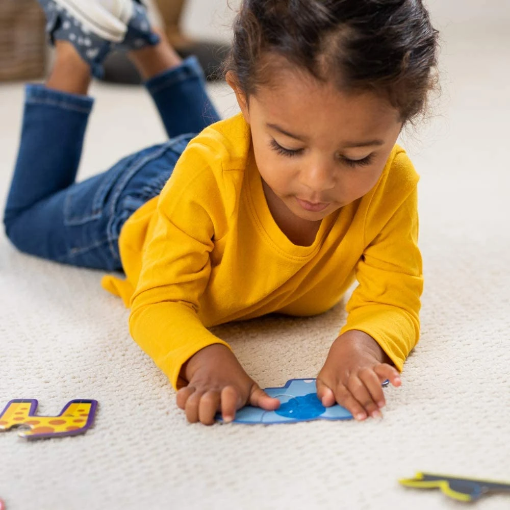 All puzzle pieces have colored edging on the front side that will help them complete the puzzle but will also allow them to learn their first colors. If puzzles are flipped on the backside, they can quickly start to match up pieces in a reverse fashion.