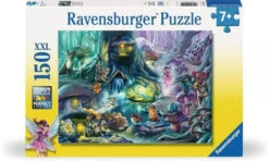Step into a realm of whimsy and wonder with our 150-piece jigsaw puzzle featuring an enchanting forest! This magical scene is alive with charming details, including playful fairies, quaint mushroom houses nestled in the undergrowth, and a sparkling waterfall cascading through the forest. Delightful wildlife adds to the enchantment, with a curious otter, cheerful frogs, and a whimsical snail all making their home in this captivating woodland setting. Each piece of the puzzle reveals intricate artwork and vibrant colours that bring this fantastical forest to life. This puzzle provides hours of engaging fun and a charming escape into a world where imagination and nature intertwine.