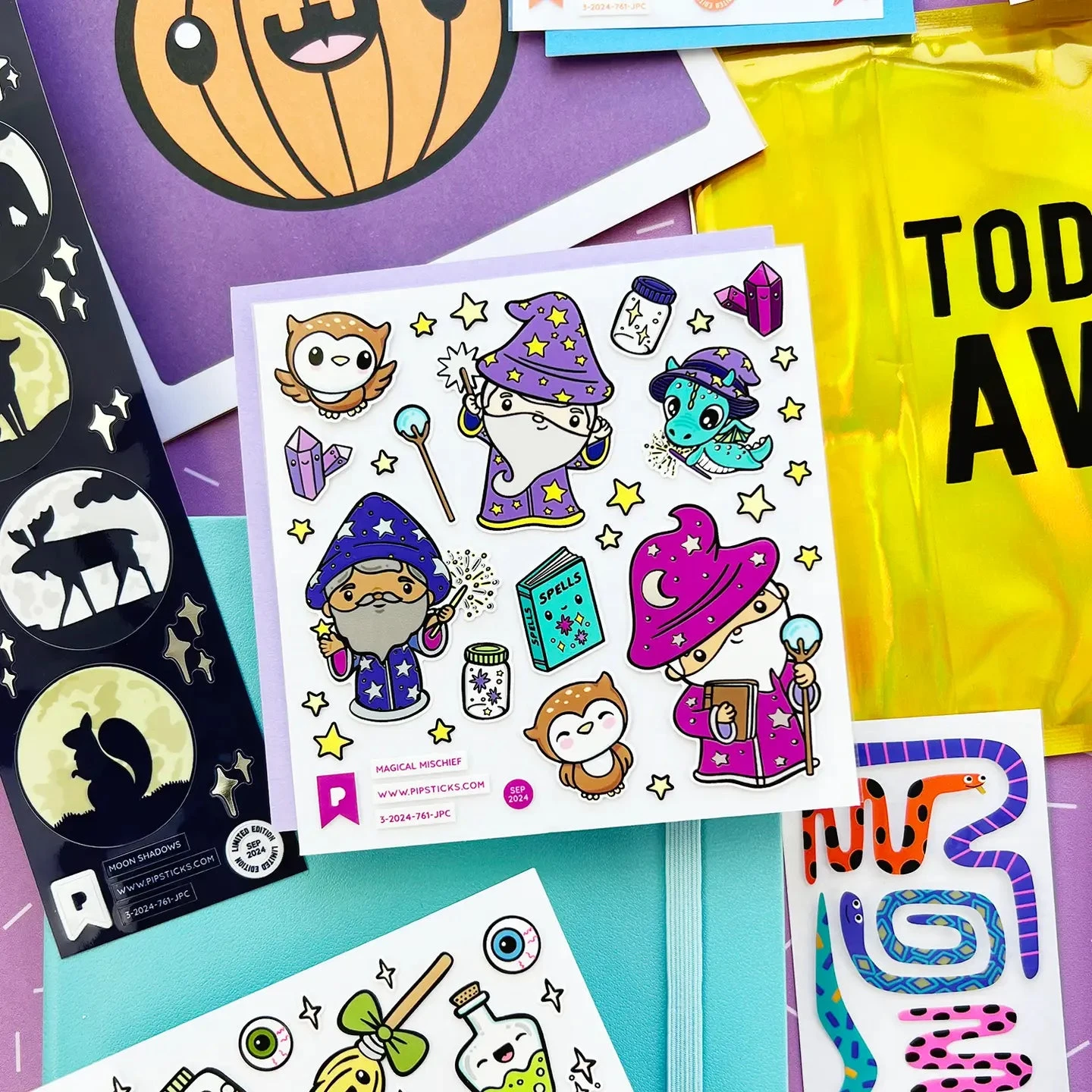 Includes one 4” x 4” sheet of Magical Mischief PipStickers and includes the Pipsticks manifesto.