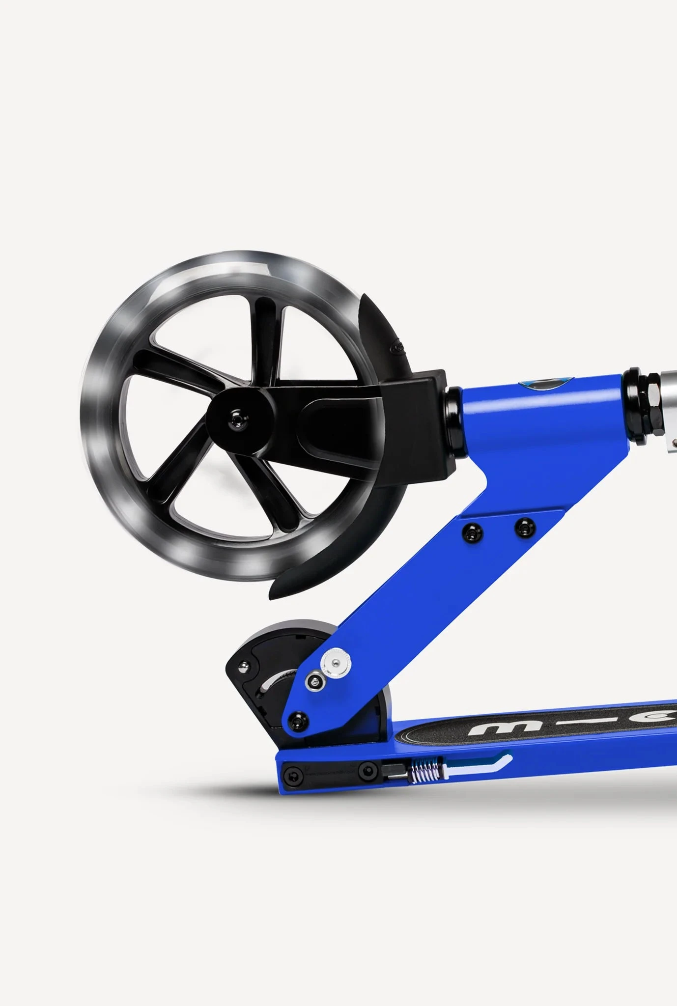 Equipped with larger wheels and a chopper-style handlebar, this design allows riders to turn easily and scoot further, faster. The motion-activated LED wheels light up with each rotation, adding a memorable touch to every ride (no batteries needed).