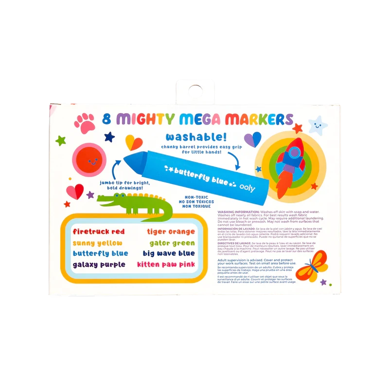 When your little one is ready to make their big mark choose Mighty Mega Markers. These 8 vibrant washable markers are chunky and easy for little hands to hold. The triangle-shaped pointed tip allows drawing thin and thick lines for the young creator.
