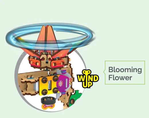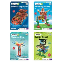 Kids will build fun, interactive toys—Pull Back Supercar, Flapping Bird, Rockin’ Robot, and Blooming Flower!