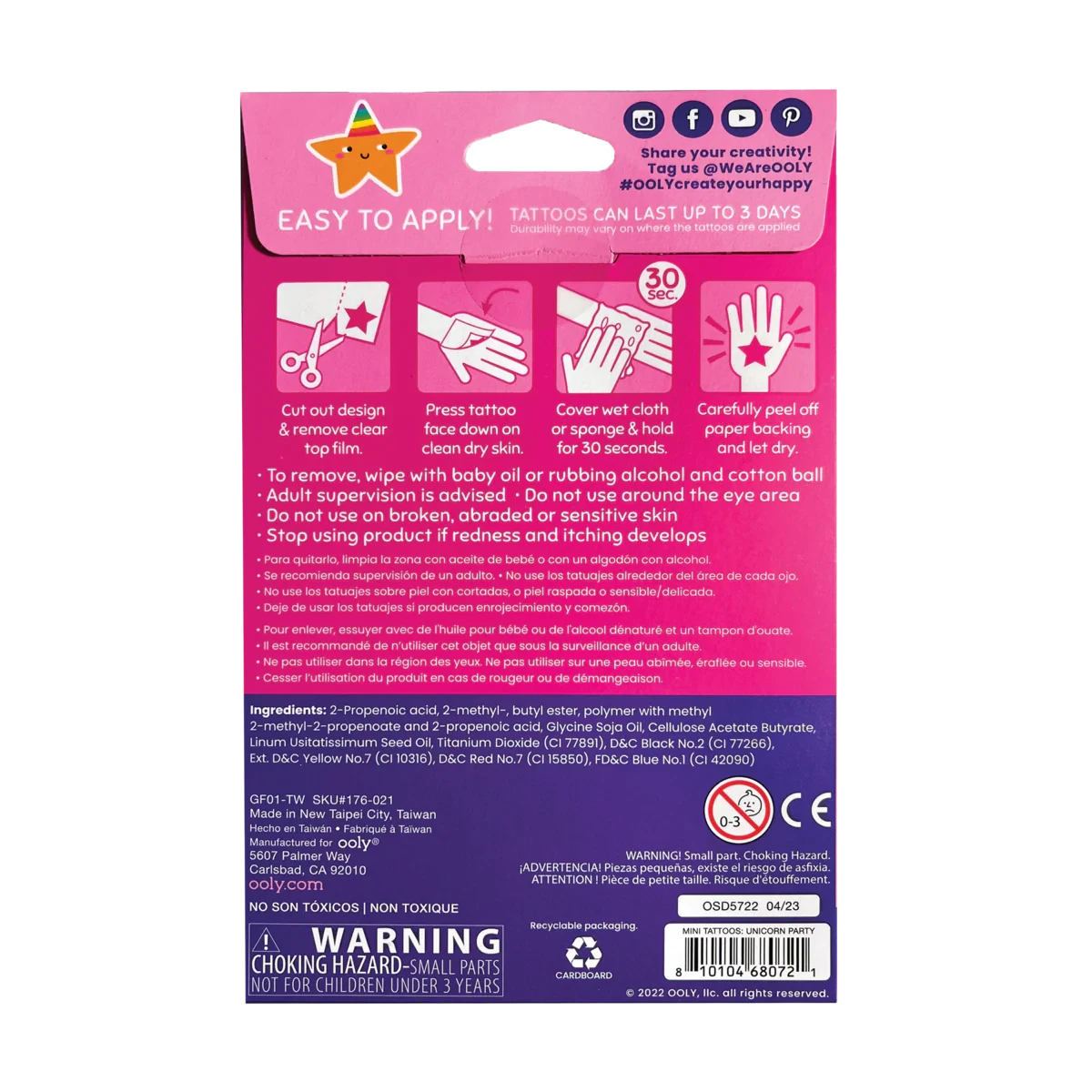 - Mini pack includes 3 sheets of temporary tattoos