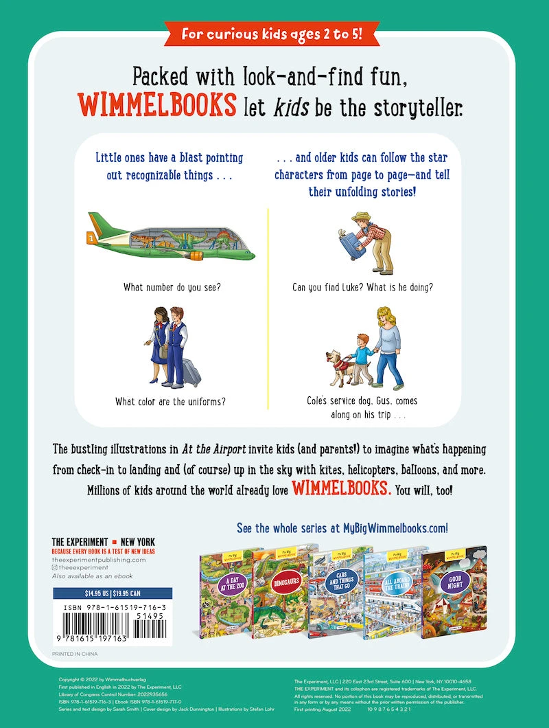 My Big Wimmelbook—At the Airport takes kids on a ride through the sky as they go through check-in, security, boarding, and, of course, getting airborne—with plenty of interesting things happening along the way. Pilots, passengers, and more are all a part of this busy cast of characters going about their day at Wimmeltown Airport. Welcome aboard!