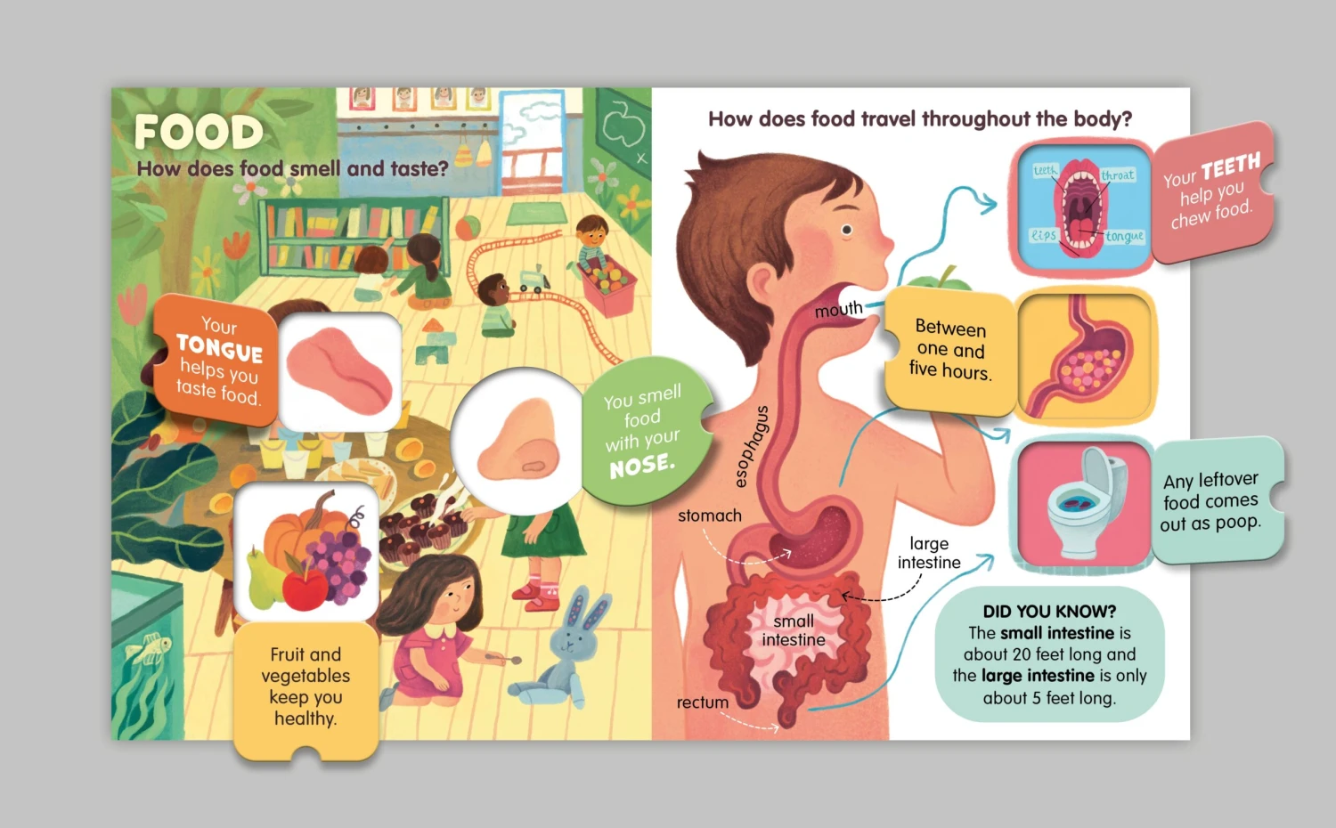 Children can learn all about the human body with this fun lift-the-flap book! Readers are introduced to the body, its different systems, the path that food takes as it travels through the body, and much more. Engaging prompts on each spread encourage children to study the pictures to answer the questions. Opening and closing the flaps helps to improve motor skills, while searching for the answers to the questions on each spread helps to build a child’s attention span.