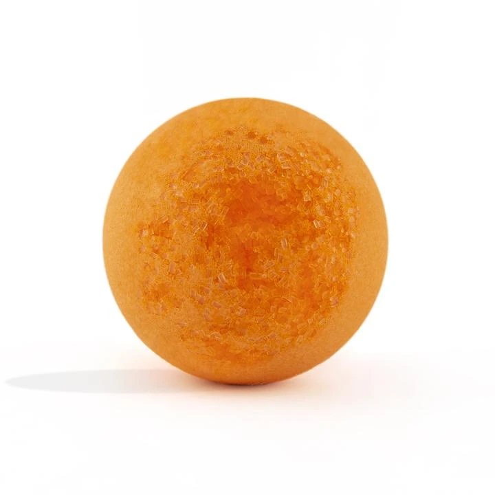 A tangerine bath fizzer with a surprise inside