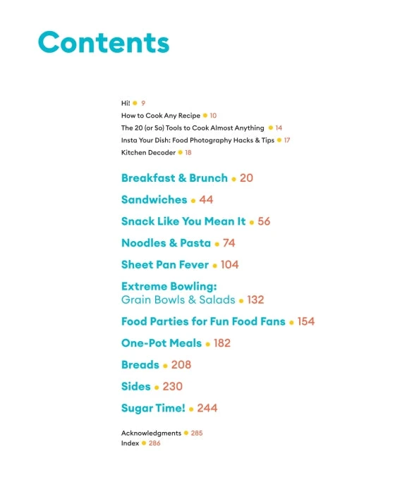 Recipes include: Fresh Custardy French Toast • OMG, I Smell Bacon! (spicy and candied, too) • Granola Bar Remix, feat. Cranberry and Ginger • The. Last. Guacamole. Recipe. Ever. • Fast Pho • Garlicky, Crumb-y Pasta • Classic Caesar Salad with Unclassic Cheesy Croutons • Crispy Pork Carnitas Tacos • Mexican Chicken Soup & Chips • Shrimp Scampi Skillet Dinner • Korean Scallion and Veggie Pancakes (Pajeon) • Fluffy Buttermilk Biscuits Put a Spell on You • Rise & Dine Cinnamon Raisin Bread • Buttery Mashed Potato Cloud • Deep Dark Fudgy Brownies • Think Pink Lemonade Bars