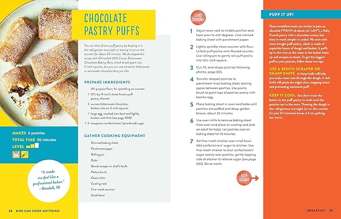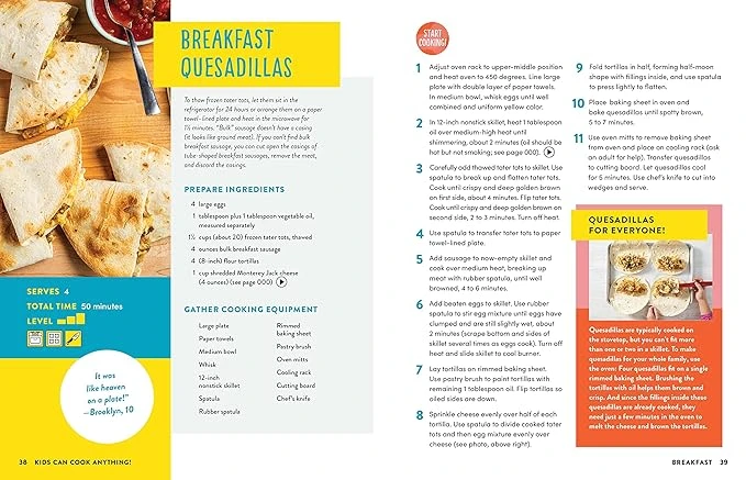 Recipes were thoroughly tested by America’s Test Kitchen test cooks AND more than 15k ATK kid testers to get them just right for cooks of all skill levels.Step-by-step photos of tips and techniques will help young chefs feel like pros in their own kitchen.QR codes throughout the book link to video examples of relevant techniques and skills to help kids visualize concepts. Testimonials from kid testers will empower young chefs to enter the kitchen.