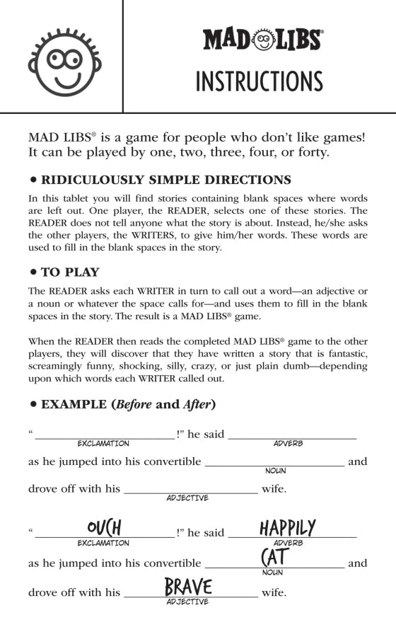 Mad Libs is the world’s greatest word game and the perfect gift or activity for anyone who likes to laugh! Write in the missing words on each page to create your own hilariously funny stories all about the solar system!