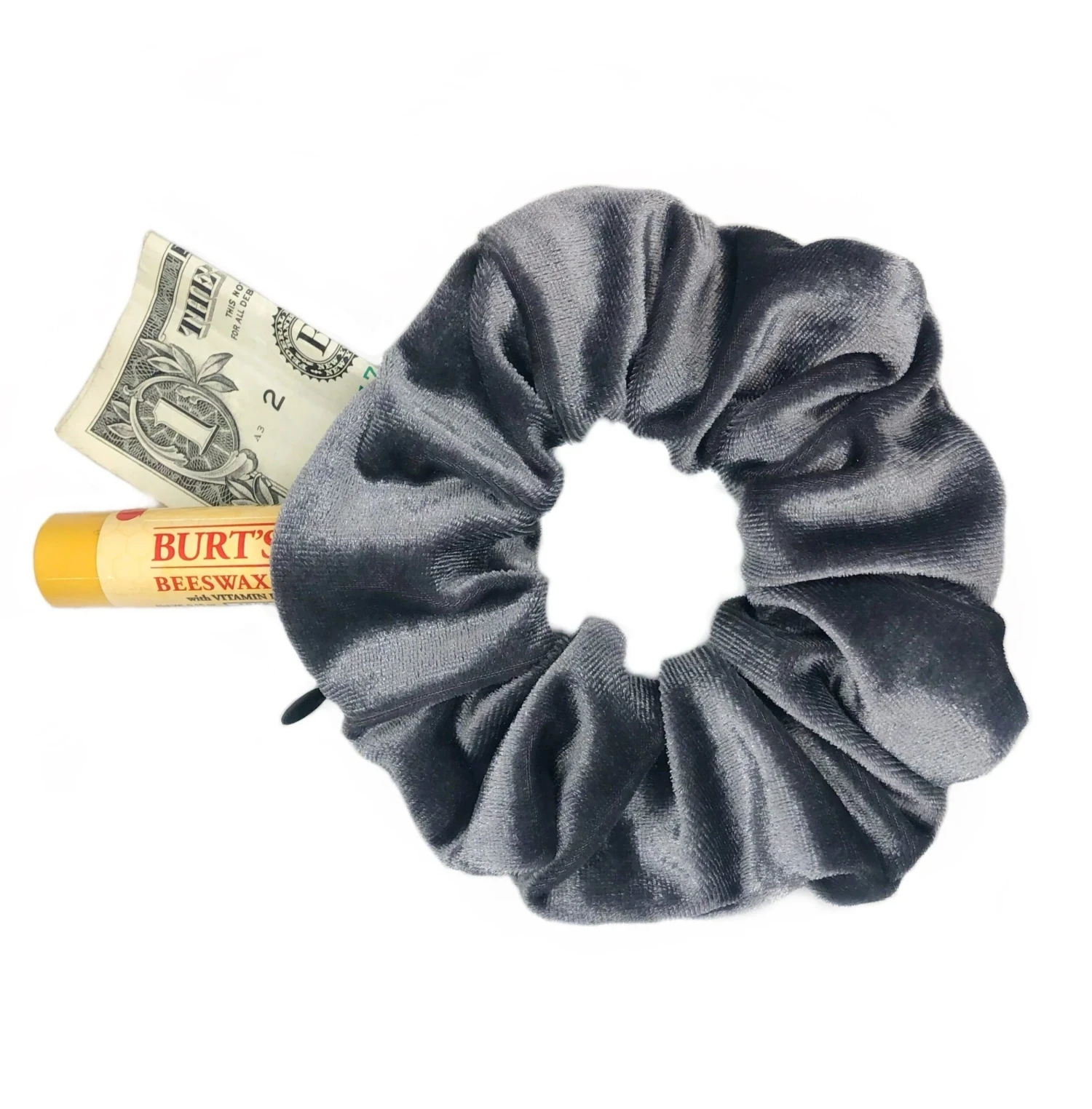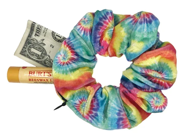 Introducing the Pocket Scrunchie! These have a zipper that lets you hide everything you need…chapstick, money, and more. Wear it in your hair or on your wrist!