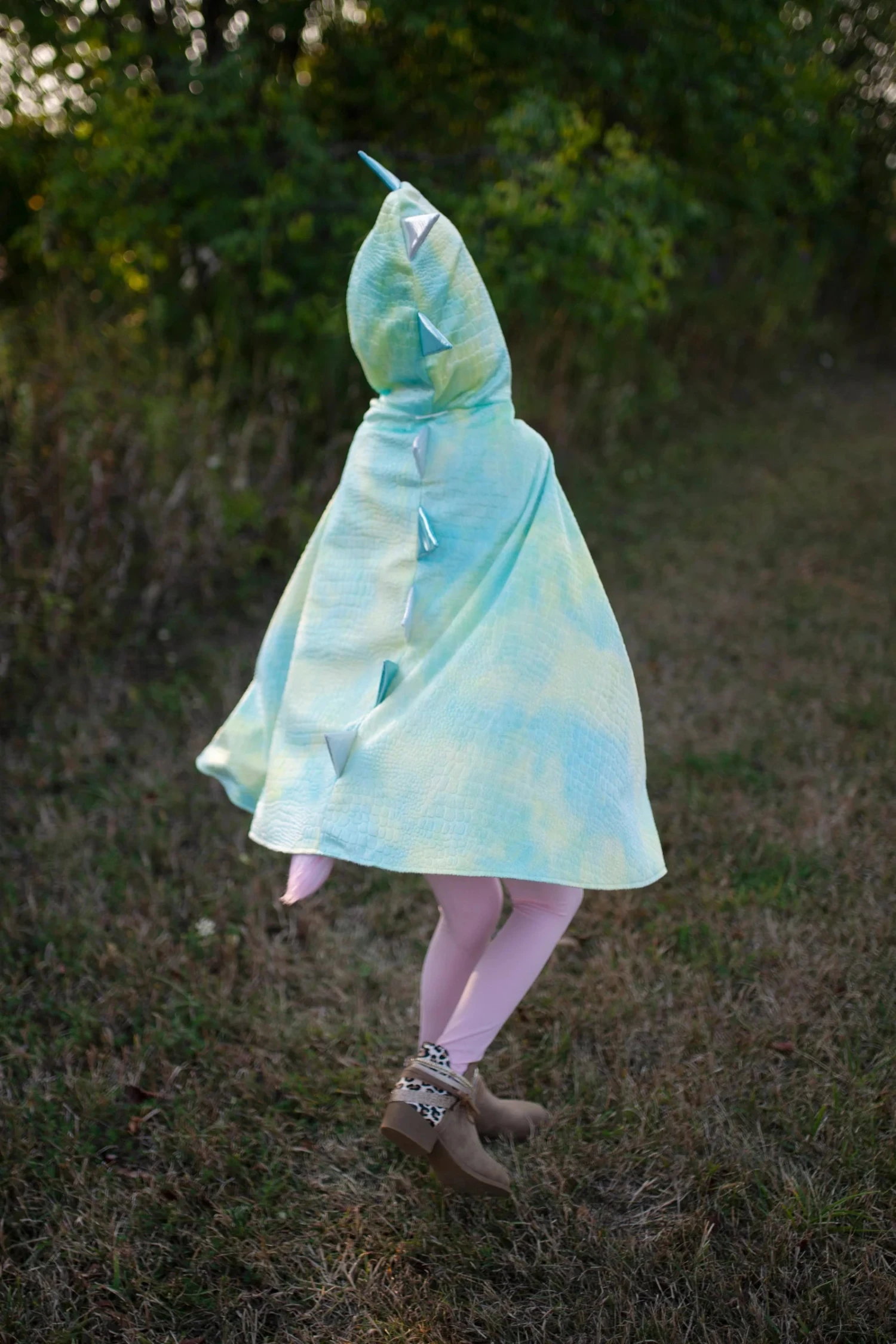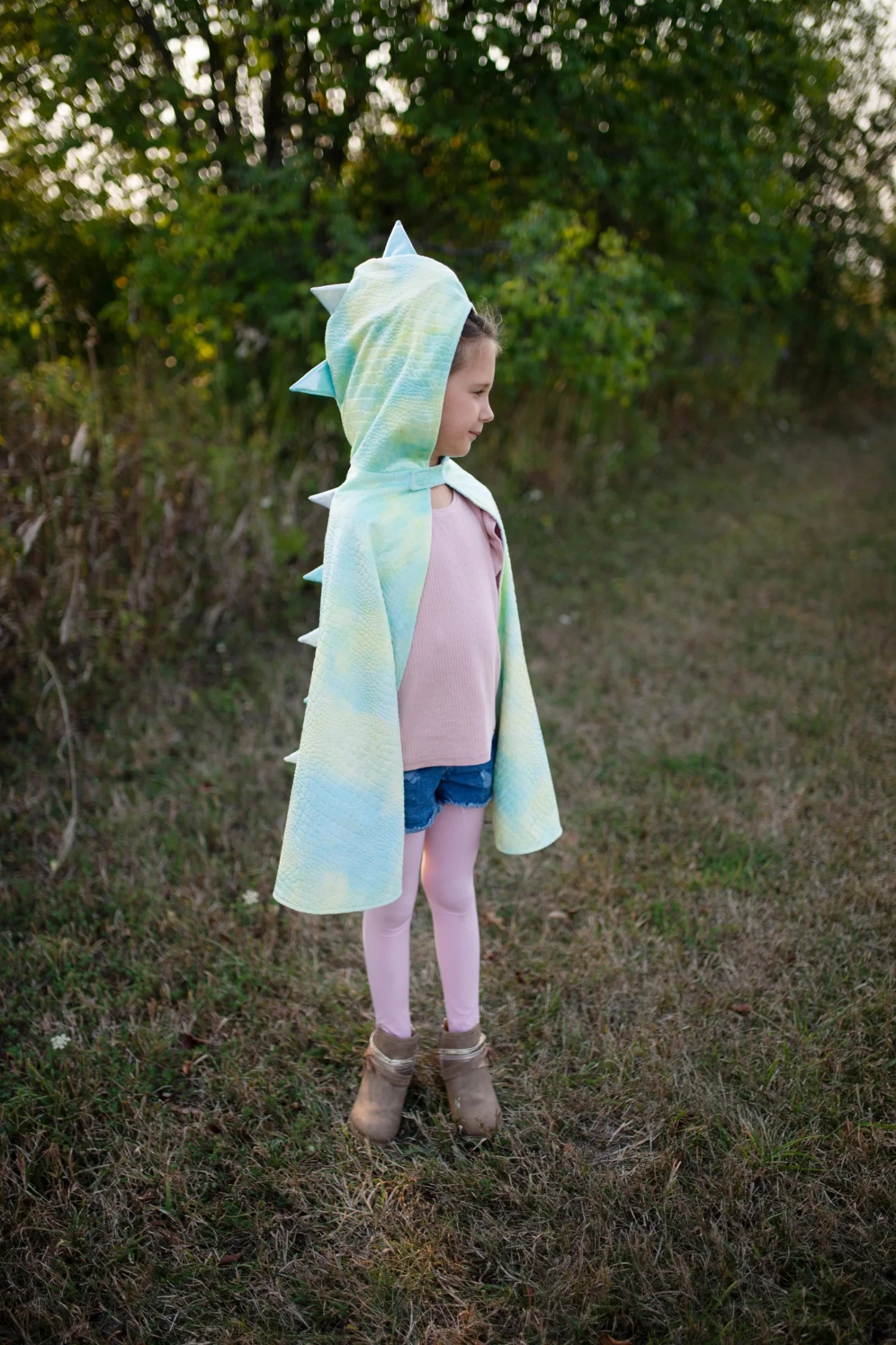 The reversible unicorn dragon of your dreams! With one side featuring a beautiful pastel rainbow unicorn and the other side featuring a fierce pastel dragon, your little one will be the talk of the town! Made with a sparkly pastel pink, purple, blue, and green fabric, your child can choose between a fuzzy unicorn or our traditional embossed, crushed velvet fabric with stuffed metallic dragon horns all the way down the back. This cape will make all of your dreams come true!