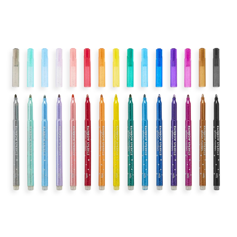 Make your own sparkly fun with this shimmering set of 15 Rainbow Sparkle Glitter Markers. This set of rainbow markers comes with 10 classic colors and 5 pastels colors so you’ll have plenty of colors to make wonderful works of art.