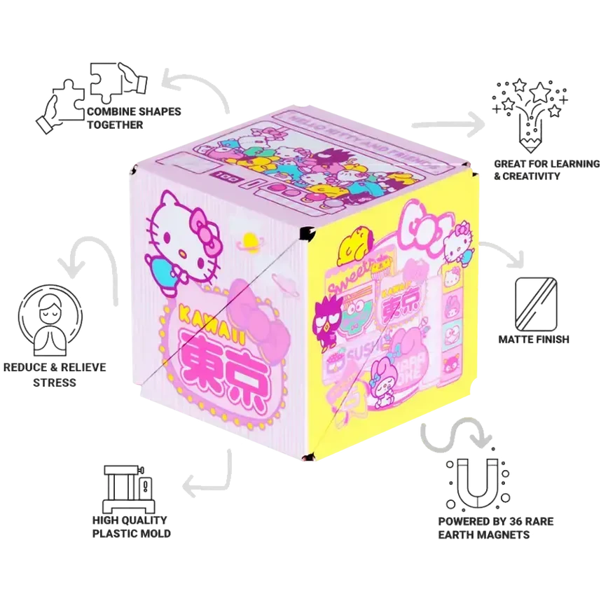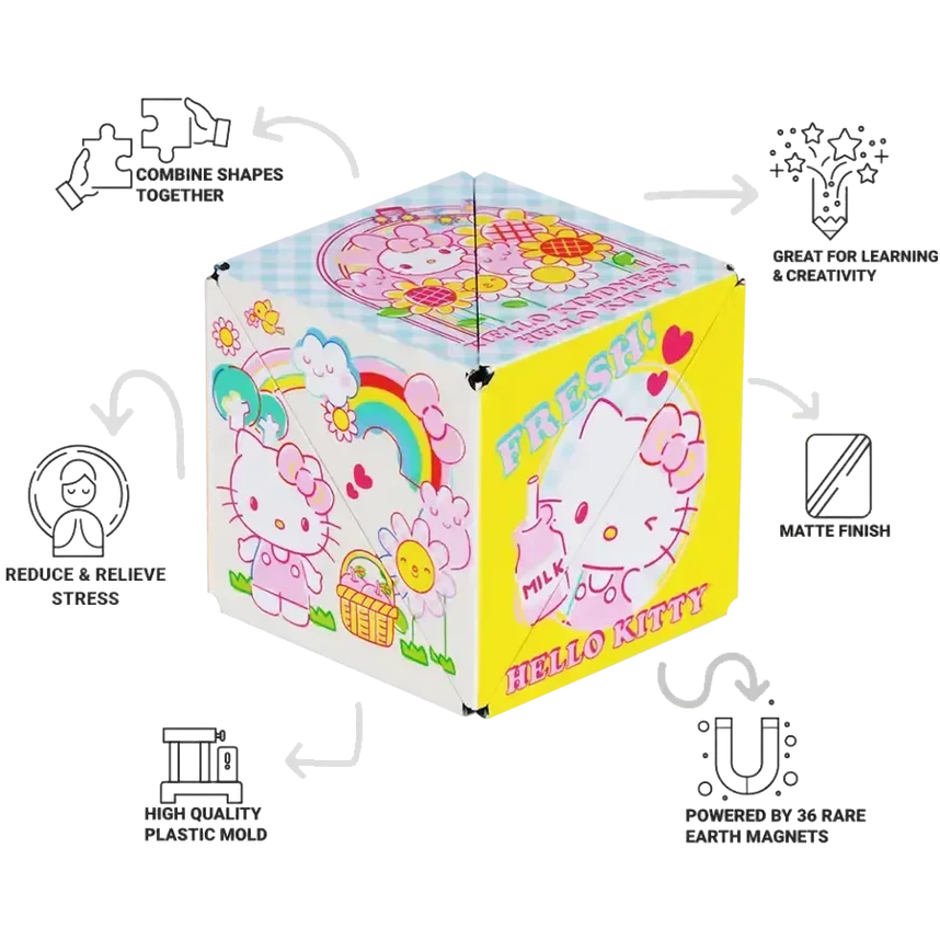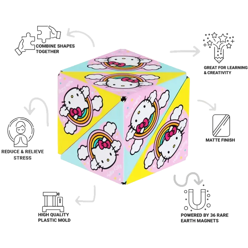 Shashibo cubes are crafted with magnetic technology, allowing them to easily snap into different shapes. The cubes feature vibrant designs and patterns, adding an artistic touch to the interactive experience. The magnetic construction ensures durability and ease of manipulation.