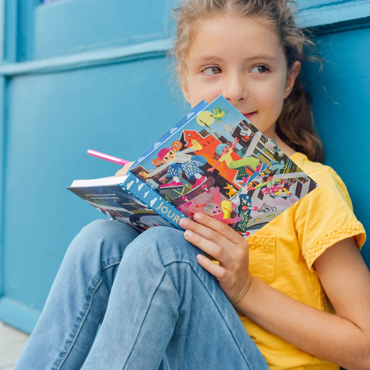 Leap into journaling action with this daring Skateboarding Journal, perfect for any adventure-loving child. Depicting a vibrant cityscape, this notebook is as fun to admire closed as it is to open up and start writing in! Artwork by Linda Bleck.
