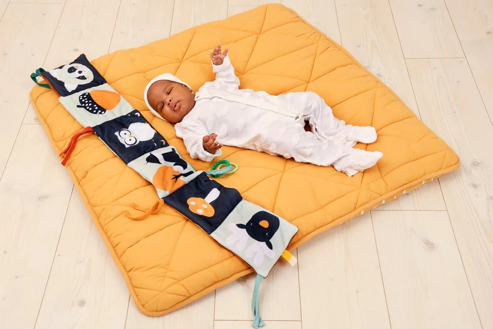 The Soft Activity Book 2 in 1 develop hand-eye coordination and support fine motor skills. This multisensory book filled with fun and engaging surprises. The contrast colors and materials help baby’s visual and sensory development in the early stages. Easily attach to crib. The teething ring help soothe baby. The mirror amuse and promote self awarenes.