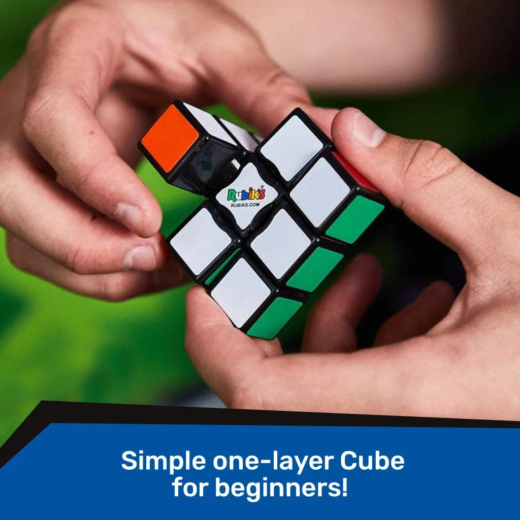 The 3x3x1 Cube is a single layer problem solving puzzle toy. Its simplicity makes it great for beginners who want to build up skills to solve the iconic 3×3 Rubik’s Cube. The Edge consists of nine Cubes arranged in a square. It features nine white and yellow stickers on the top and bottom and three green, orange, blue and red stickers on the sides.