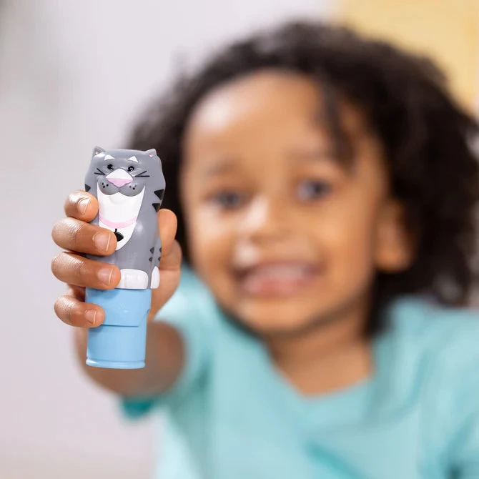 Melissa & Doug Sticker WOW!™ is a whole new way to play with stickers! Let the adorable, collectible Tuna the Cat stamp, stamp, stamp its way through 24 pages of fun-filled, pets-themed counting, matching, and search-and-find activities. The refillable sticker stamper comes pre-loaded with a sticker stack of 300 assorted stickers – with 100 unique designs in every stack, each sticker is a surprise!