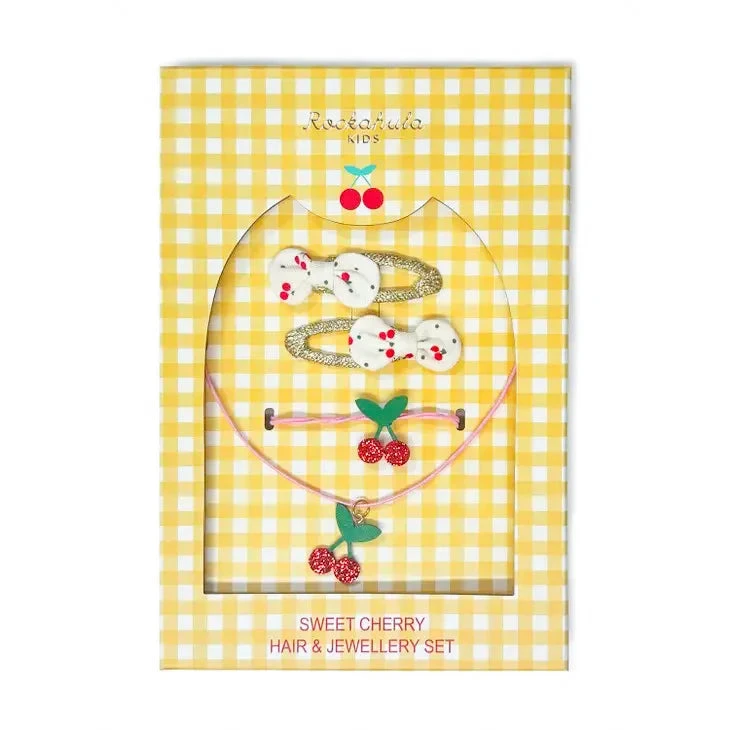 Indulge in this Sweet Cherry Hair & Jewelry Set for the perfect combination of sweet and stylish. With its cherry-themed hair accessories and coordinating jewelry, you’ll be sure to stand out in a crowd. Get ready to add a charming touch to any outfit.