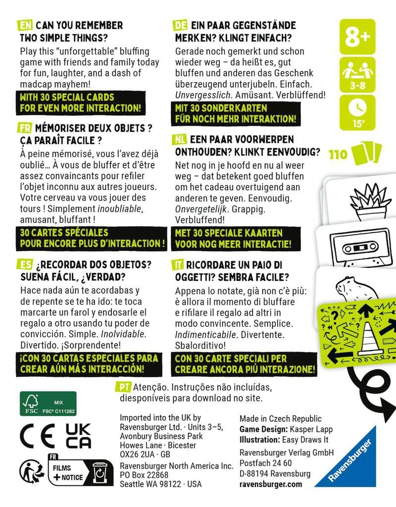 Remember a few items? Sounds easy? Not with That’s not a hat – Pop Culture! This “unforgettable” and ingeniously simple party game shows in a surprising and amusing way how easily our brain can be confused.