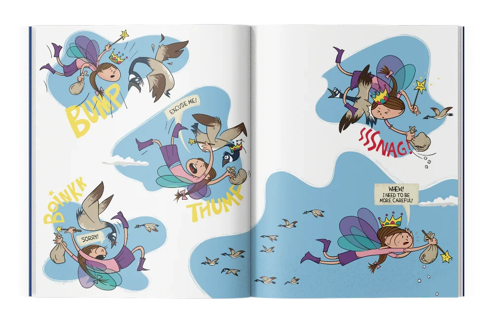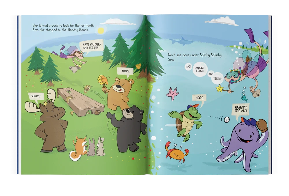 Here come Sprinkles, Gizmo, Obi, Rebel, Acorn, Tupelo, Twigs, Kai, and Bubbles, the stars of “The Tooth Fairy’s Best Day Ever”, a story about how new friends help out The Tooth Fairy when she is having a bad day. It’s going to take a lot of teamwork! And after the adventure, all your wiggly tooth questions are answered.