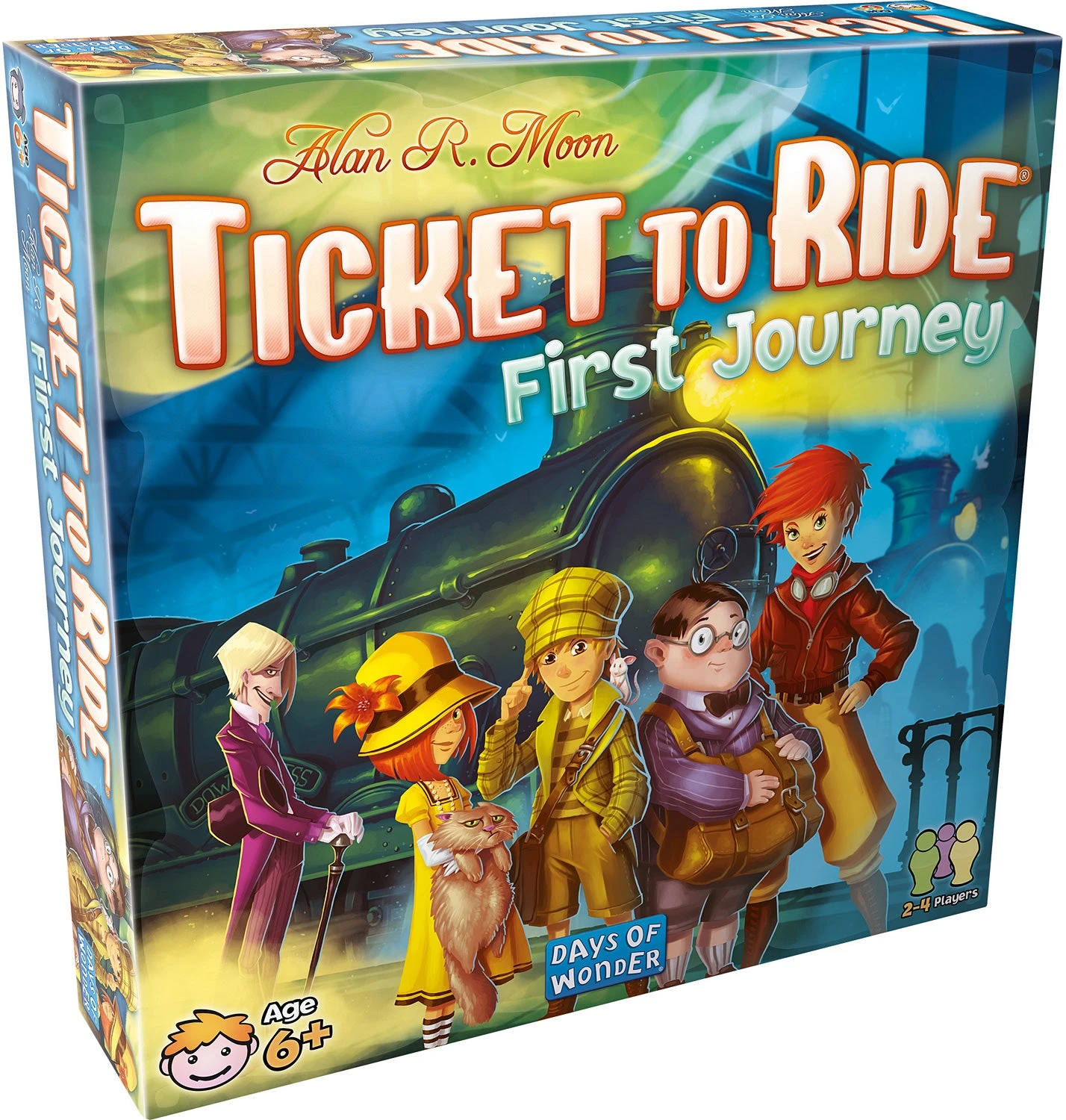 Just like in Ticket to Ride, players collect train cards, claim routes, and try to connect cities coast-to-coast. In First Journey, though, routes are shorter, train cards are drawn straight from the deck, and the game ends when one player completes six tickets, claiming the Golden Ticket as their prize.