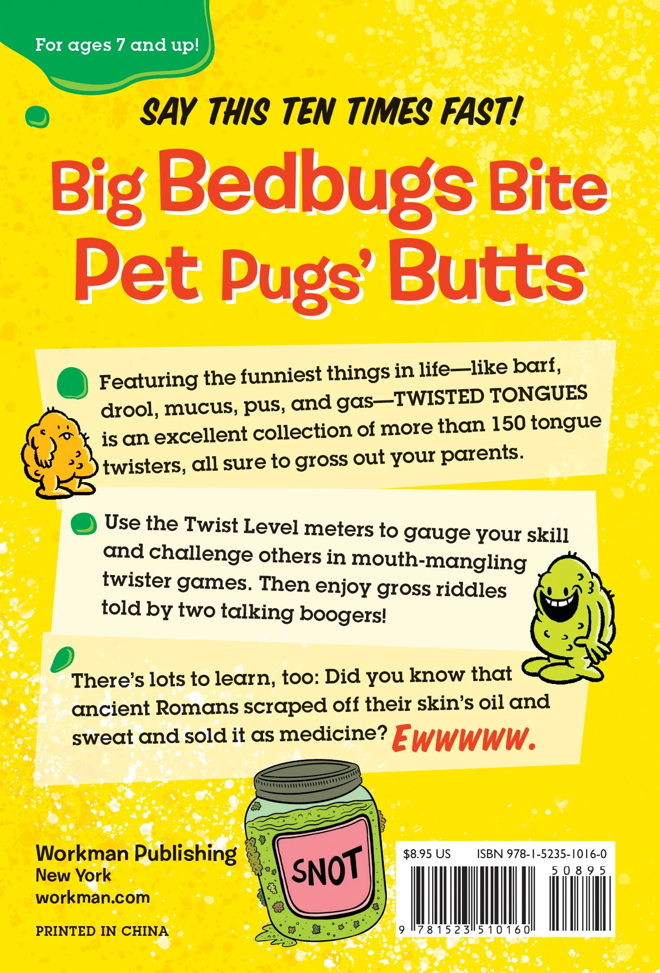 Featuring the funniest things in life––like barf, drool, mucus, pus, and gas––Twisted Tongues is an excellent collection of more than 150 tongue twisters, all sure to gross out your parents.